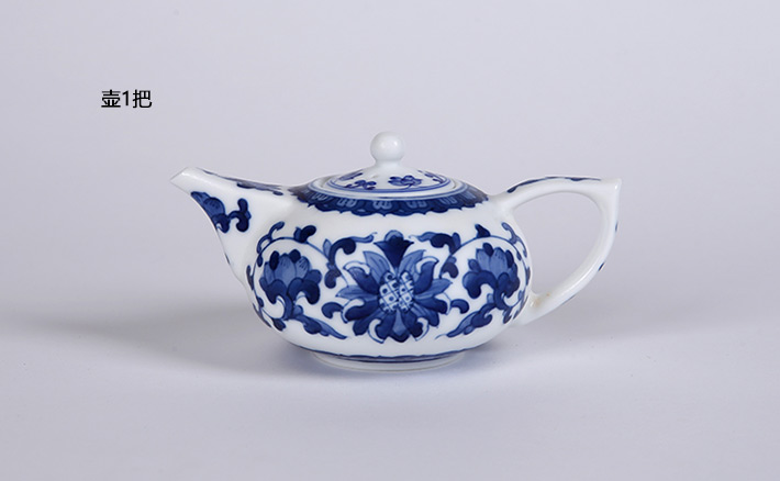 8頭手繪青花工夫茶具洋蓮