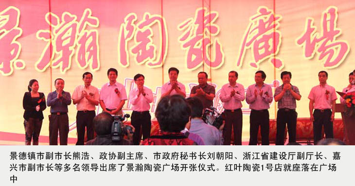 在景瀚陶瓷廣場落成開業慶典儀式上,公司副總吳愛云受王耀董事長委托,代表景德鎮陶瓷股份有限公司,代表紅葉陶瓷1號店,代表所有進駐的業主們發言。她說:今天是五星級陶瓷購物天堂——景瀚陶瓷廣場開業的大好日子,受王耀董事長委托,我僅代表景德鎮陶瓷股份有限公司,代表紅葉陶瓷1號店,代表所有進駐的業主們,對景翰陶瓷廣場的開業表示熱烈的祝賀。祝景瀚陶瓷廣場開業大吉,生意興隆。
